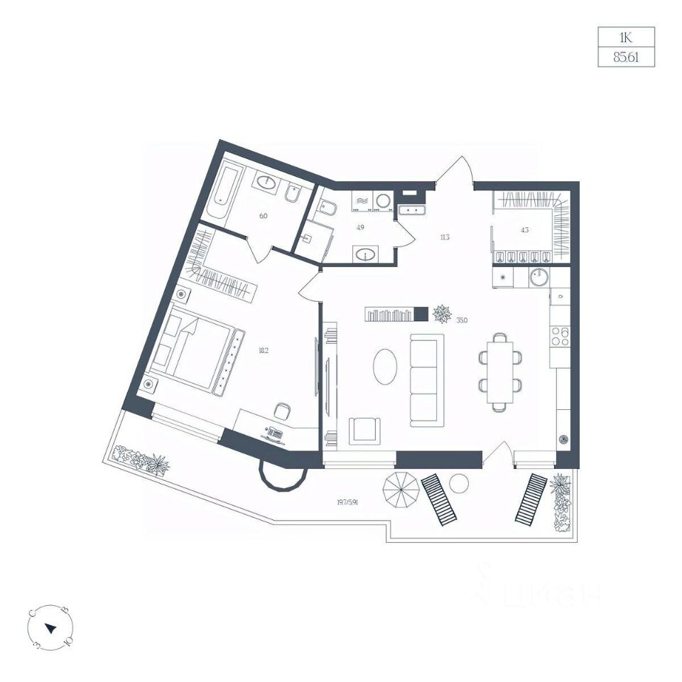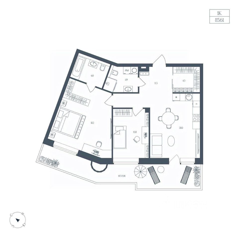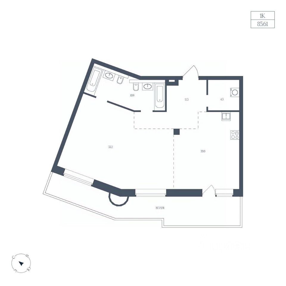 Общая площадь85,61 м²