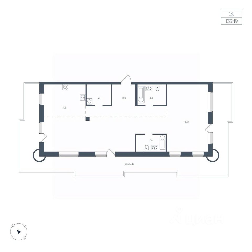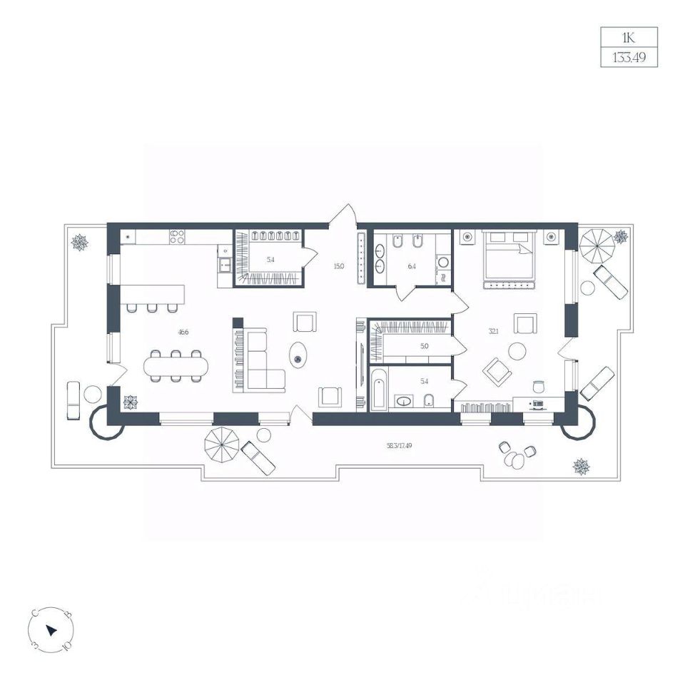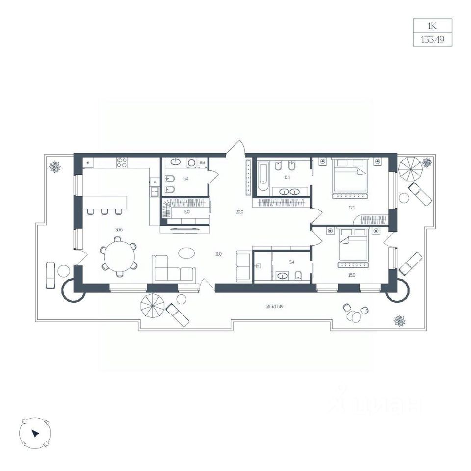 Общая площадь133,49 м²