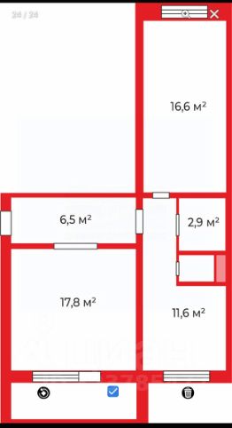 Комнаты раздельные зал 17,8 кв.м. с выходом на застекленную лоджию и спальня 16,6 кв.м. Просторная кухня 11,6 кв.м.