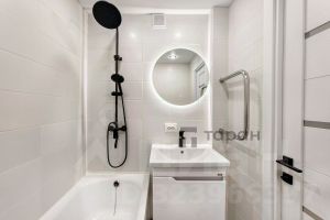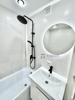-раздельный санузел, что актуально для большой семьи. Ванная с современной сантехникой, отделка плиткой и керамогранитом. Стильное зеркало с подсветкой. Установлен новый полотенцесушитель, шаровые краны на воде, сделана разводка воды пвх трубами.