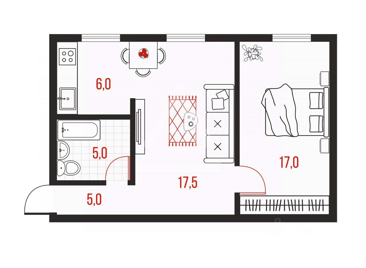 Продается 2-комнатная квартира в центре Челябинска! Площадь: 48,7 кв.м.