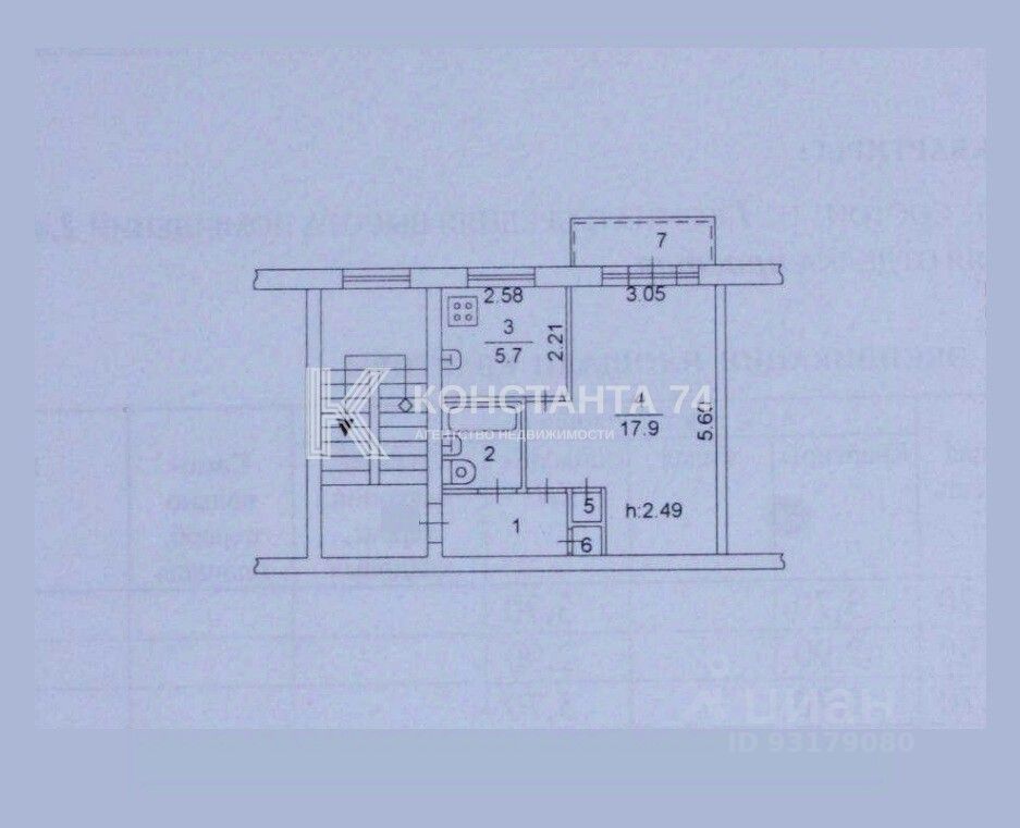 Общая площадь: 31.1 кв.м