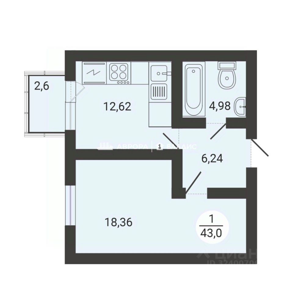Балкон 2,6 м²