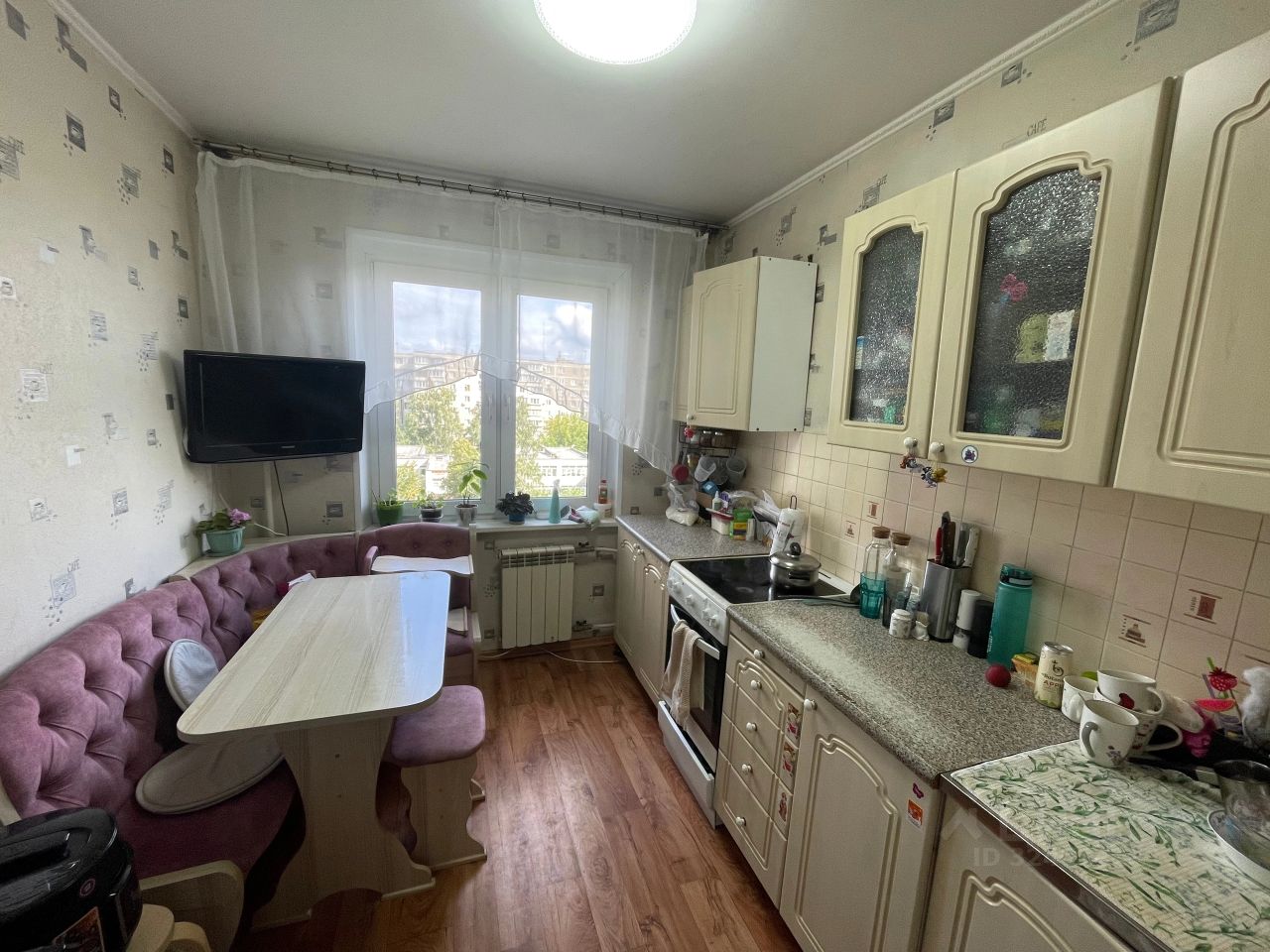 Квартира полностью готова к проживанию. В квартире остается : кухонный гарнитур, электроплита, уголок на кухне, большой шкаф купе в прихожей и шкаф купе в коридоре.