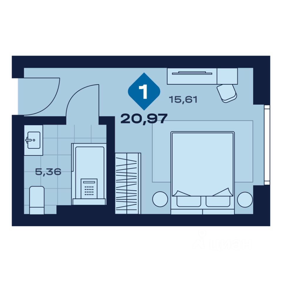 Общая площадь20,97 м²
