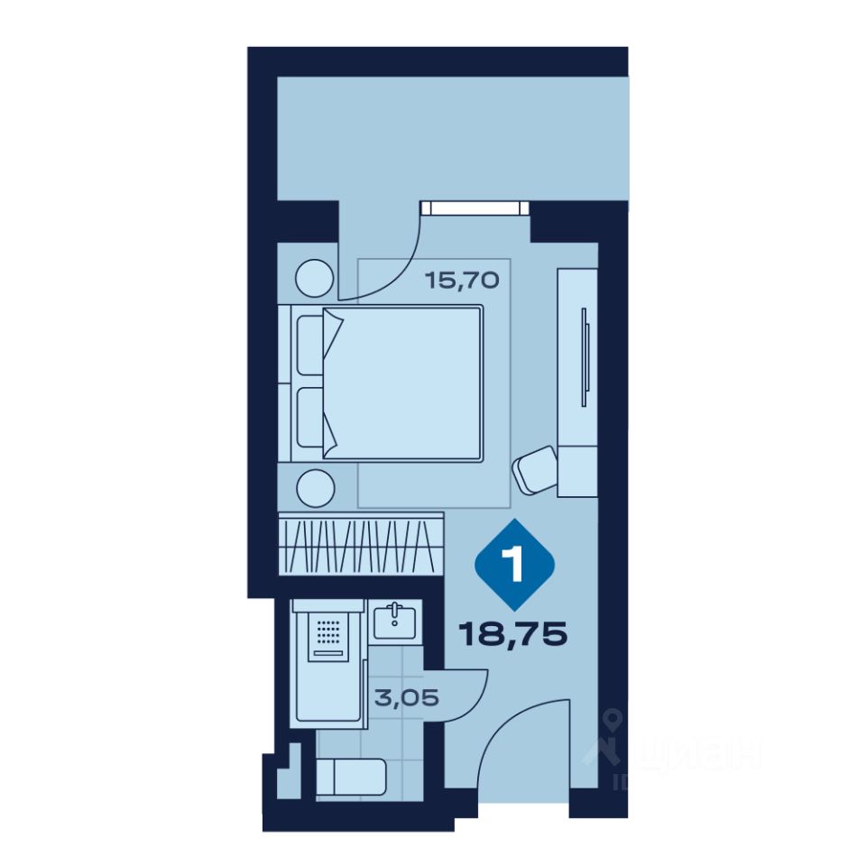 Общая площадь18,75 м²