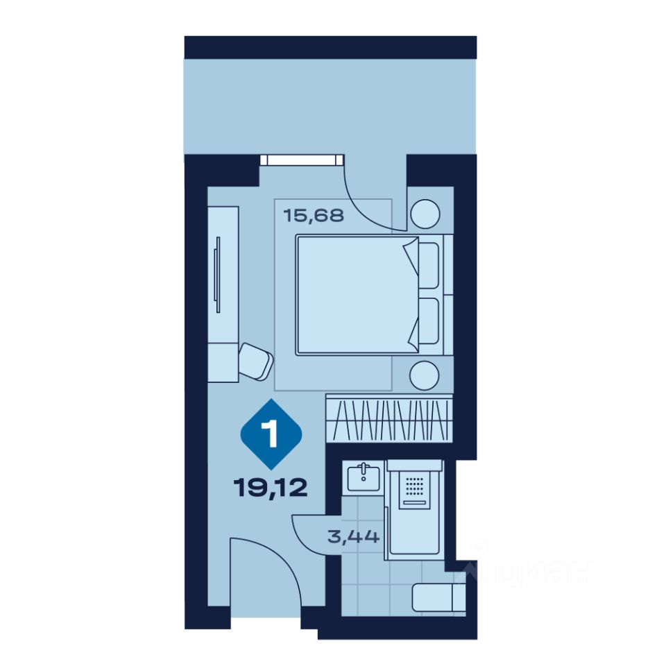 Общая площадь19,12 м²