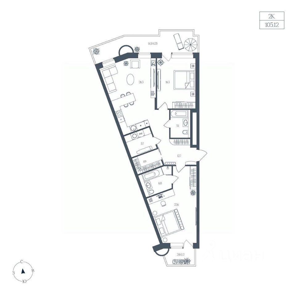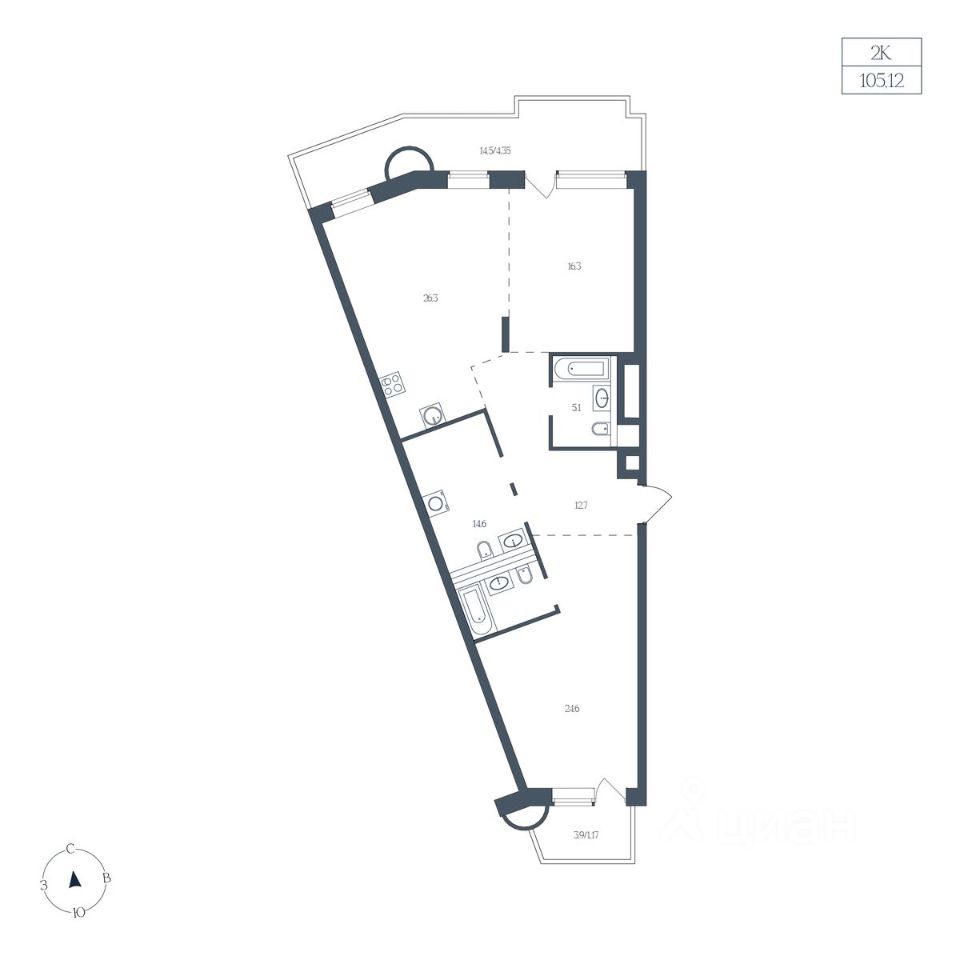 Общая площадь105,12 м²