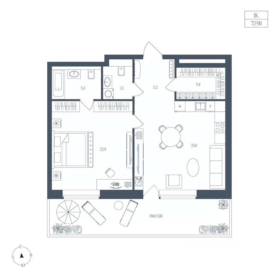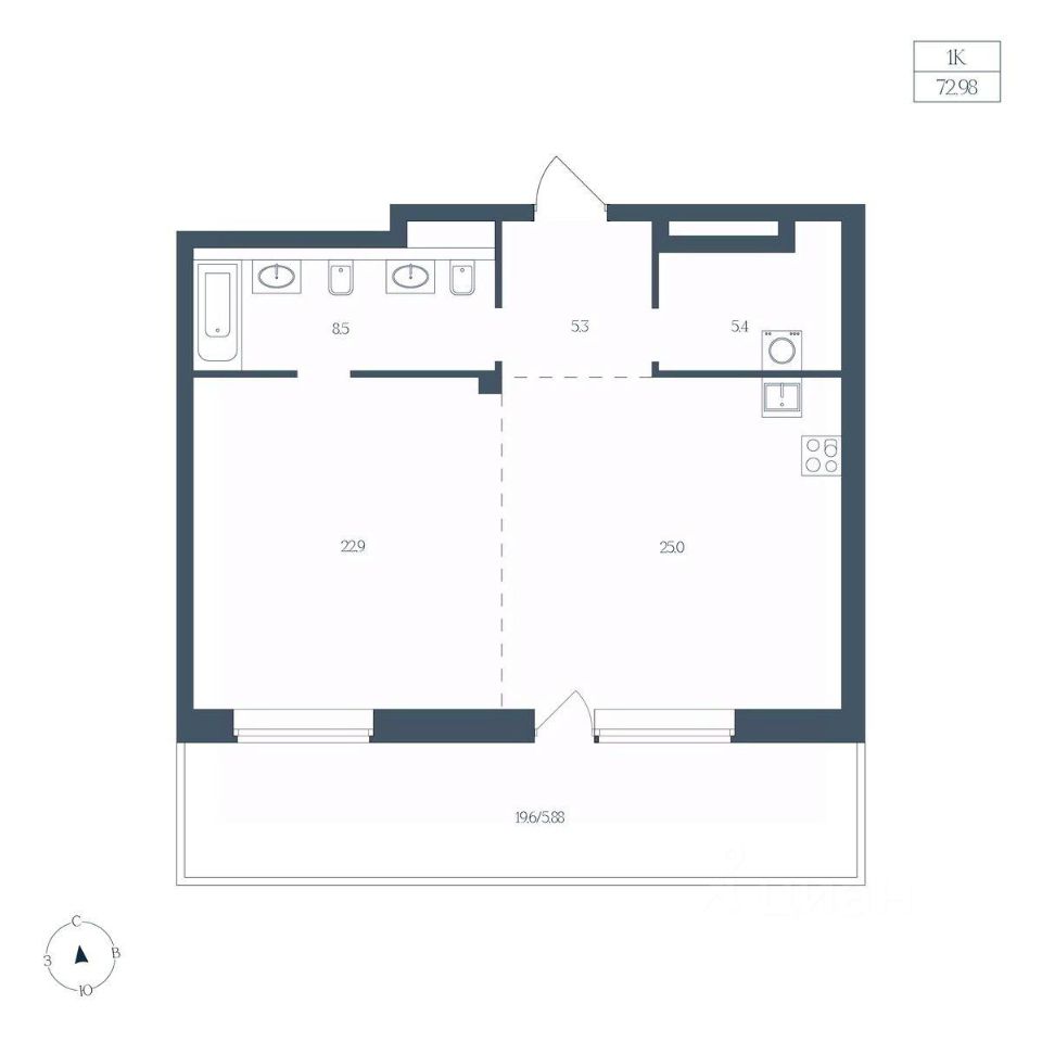 Общая площадь72,98 м²