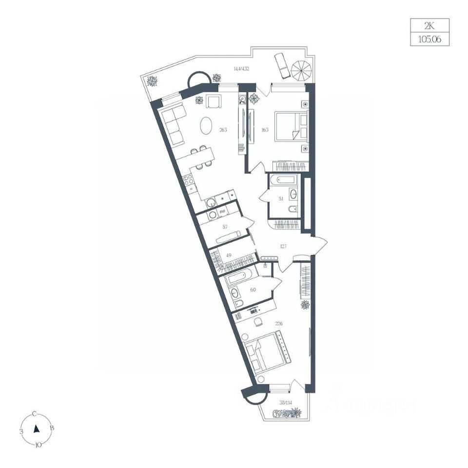 Общая площадь105,06 м²