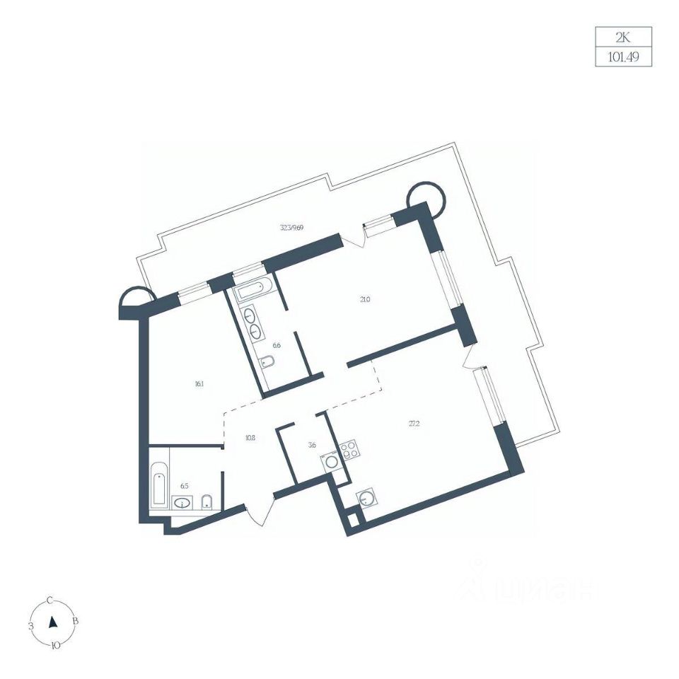 Общая площадь101,49 м²