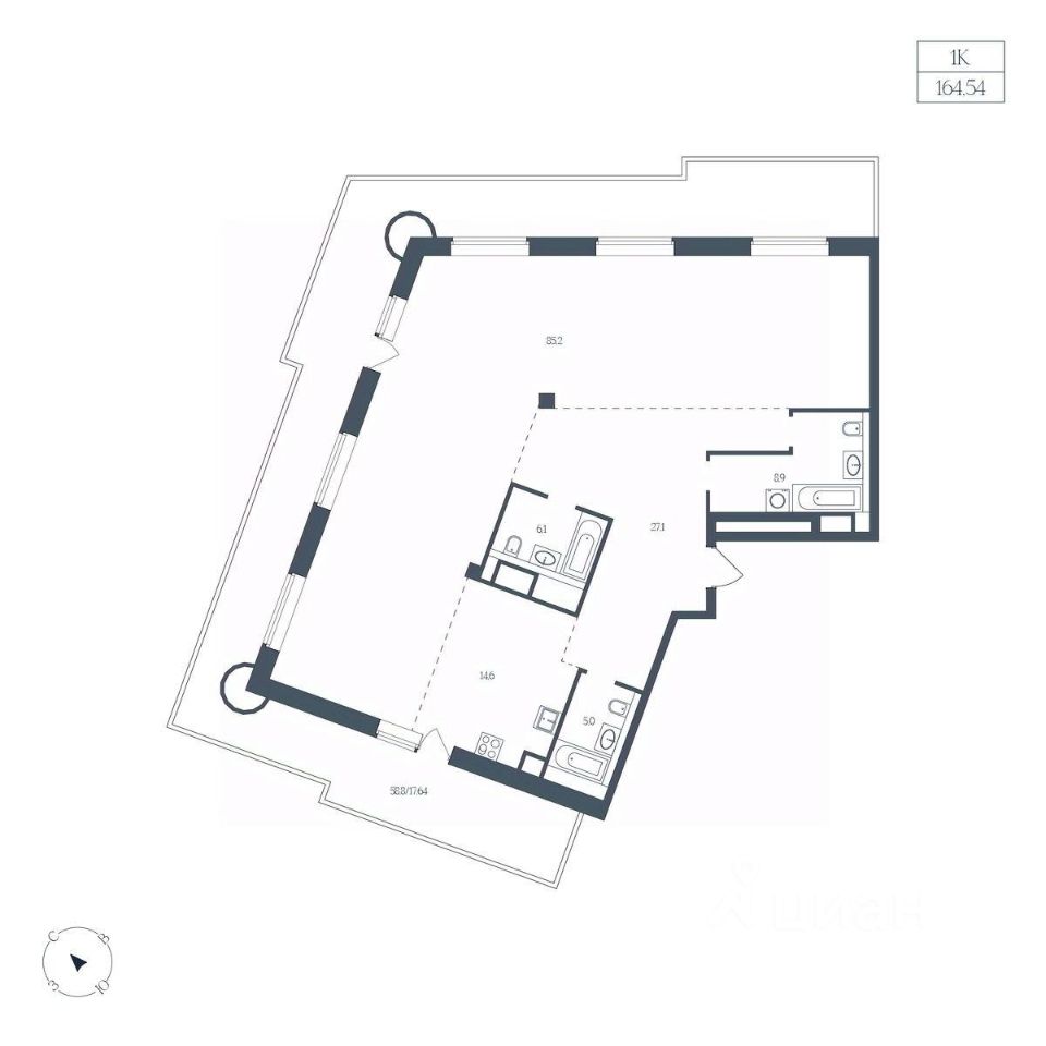 Общая площадь164,54 м²