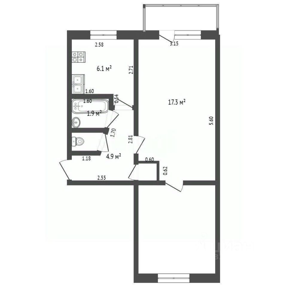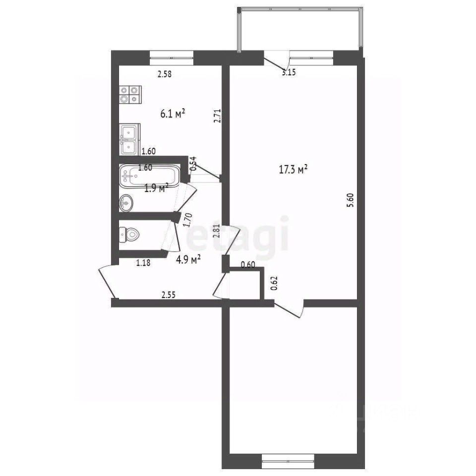 Площадь кухни: 6.1 кв.м.