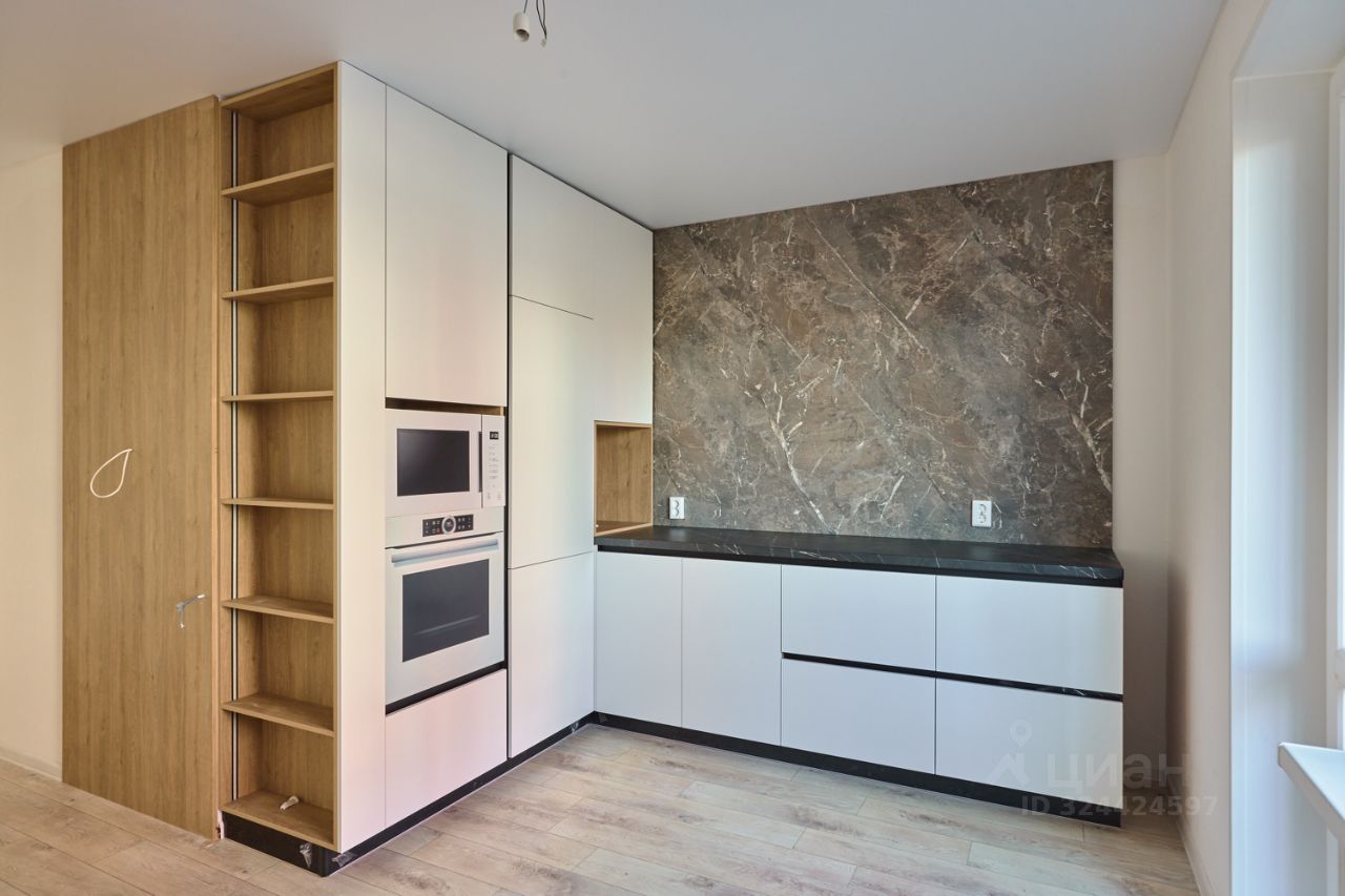 Объединенное пространство кухни и гостиной: наслаждайтесь одновременным приготовлением блюд и общением с близкими. Есть выход на лоджию.