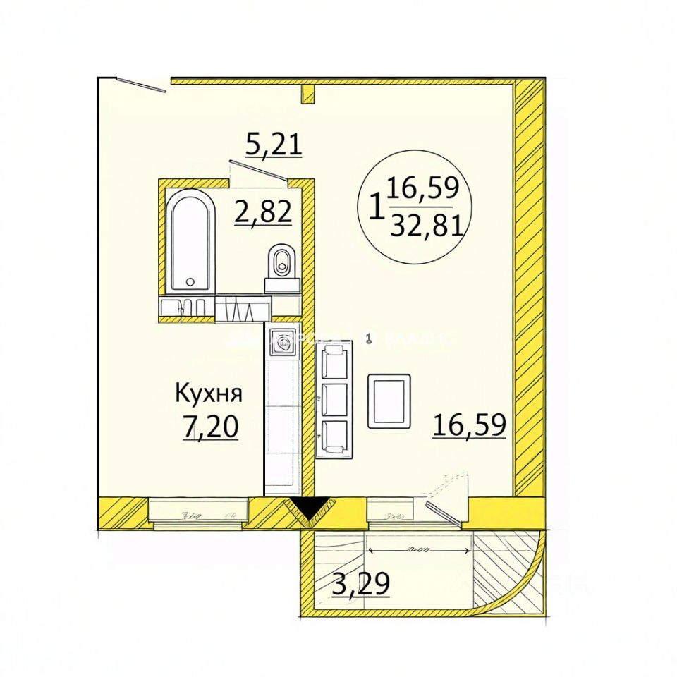 Однокомнатная квартира 32м² в спокойном и тихом районе
