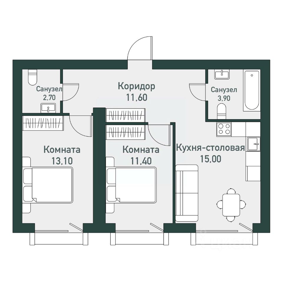 Продаётся студия + 2 спальни общей площадью 56,40 кв.м. в загородном районе комфорт-класс "ТвояПривилегия". Он расположен в перспективной локации города с точки зрения экологии, далеко от производств на берегу Шершневского водохранилища, в 20 минутах от центра Челябинска.