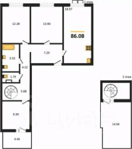 86 м²