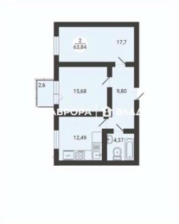 В продаже просторная двухкомнатная квартира 63,84 кв.м. с ремонтом от застройщика в п. Молодёжный ждёт счастливых обладателей!