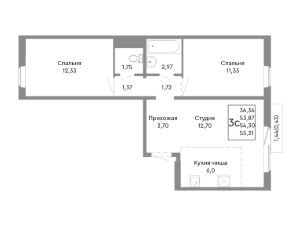 54,3 м²