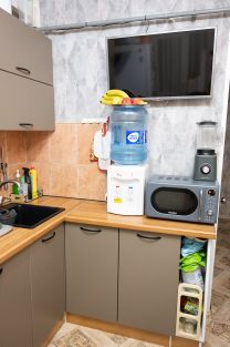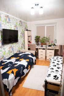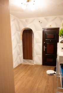 Во всей квартире свежий ремонт 24-25 год., в ванной комнате и сан узле кафель. В квартире натяжные потолки, кроме холла и кухни. В подъезде свежий ремонт, соседи хорошие.