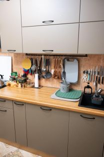 Есть кладовка, в ней большой стеллаж и штанга для вещей. Всё остаётся.