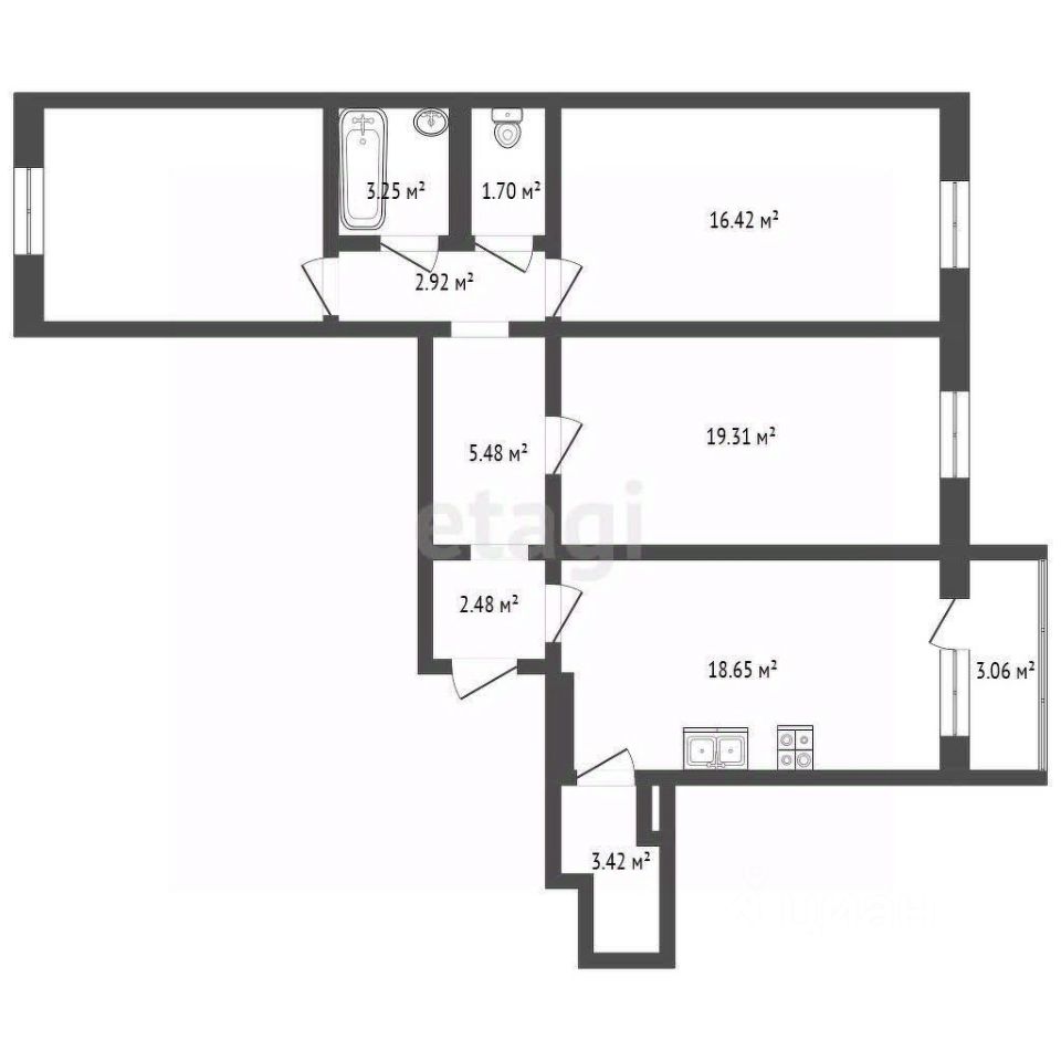 -кладовая 3,42 кв.м.(выход из кухни).