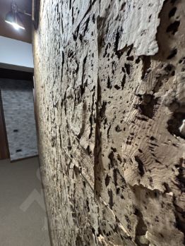 Прекрасное сочетание пробки на стенах- дерева и камня.