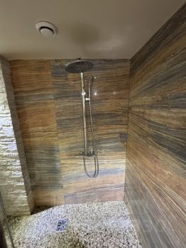 Санузел великолепен- итальянский керамогранит, душевая.