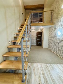 Установлены две лестницы из натурального дерева.