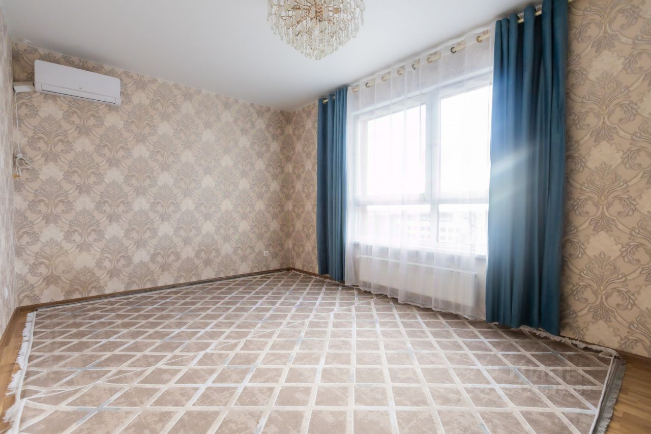 Просторная кухня-гостиная с выходом на панорамный балкон. Вид с балкона — на детскую площадку во дворе (удобно наблюдать за детьми).