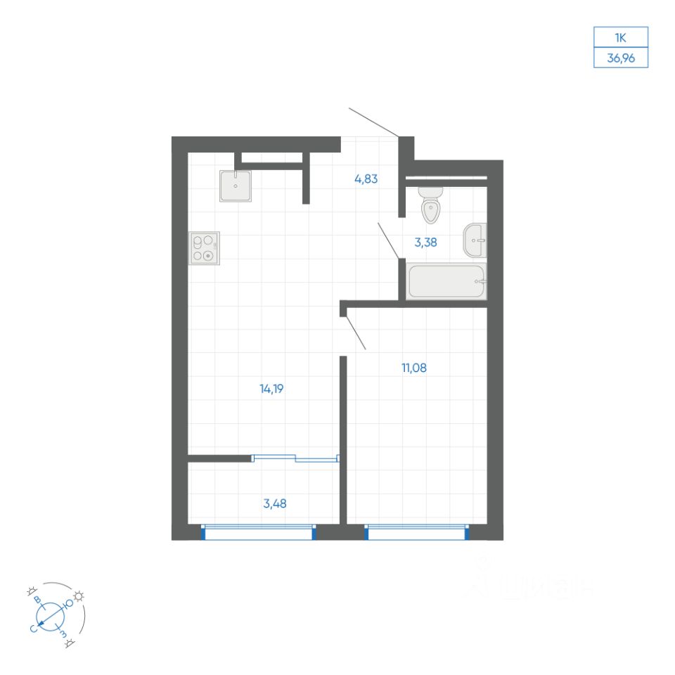 Общая площадь35,22 м²