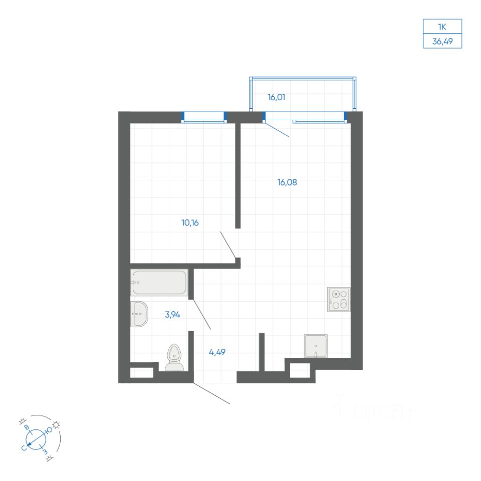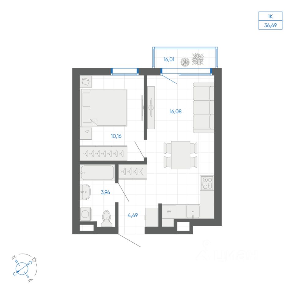 Общая площадь35,22 м²