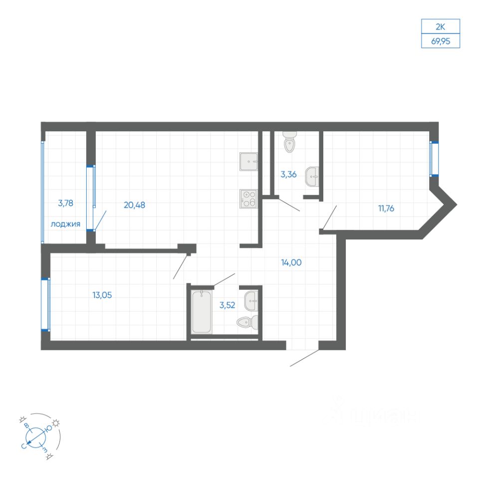 Общая площадь68,06 м²