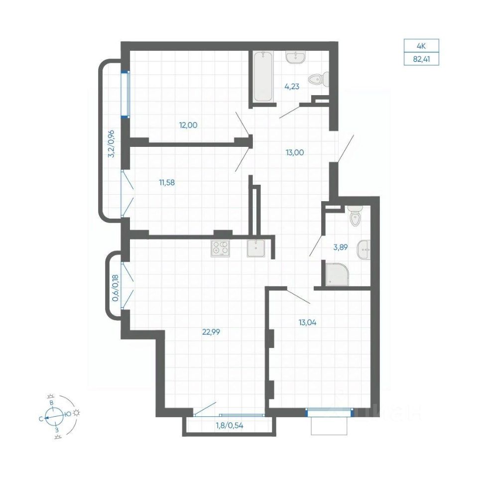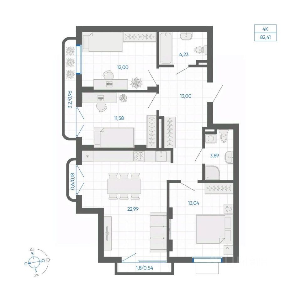 Общая площадь82,41 м²