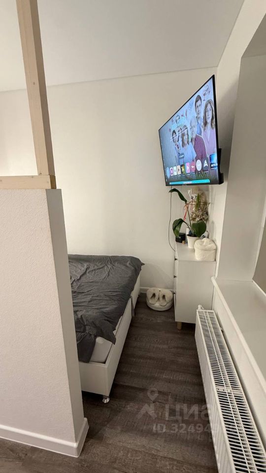 Кровать и матрас Askona. Телевизор на кронштейне. В душе инсталляция , стиральная машина и водонагреватель .