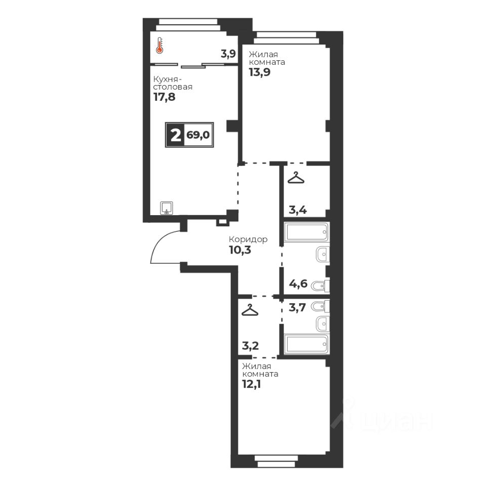 Продаётся 2-комнатная квартира в строящемся доме (Дом 1 (стр.) секция А, Б, И, К, Л), срок сдачи: IV-кв. 2027, общей площадью 69 кв.м., на 6 этаже. Новый жилой комплекс "Голос Кашириных" от группы компаний "Голос. Девелопмент" расположен по адресу: г. Челябинск, по ул. Братьев Кашириных.