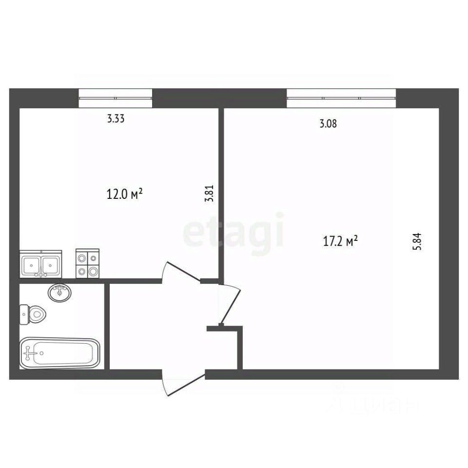 - Её ключевое преимущество — удачная планировка с изолированной комнатой 17 м² и нестандартно просторной кухней 12 м², что создает ощущение большего метража и позволяет удобно организовать как зону отдыха, так и кухню-гостиную.