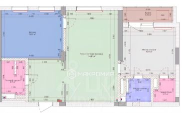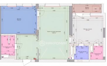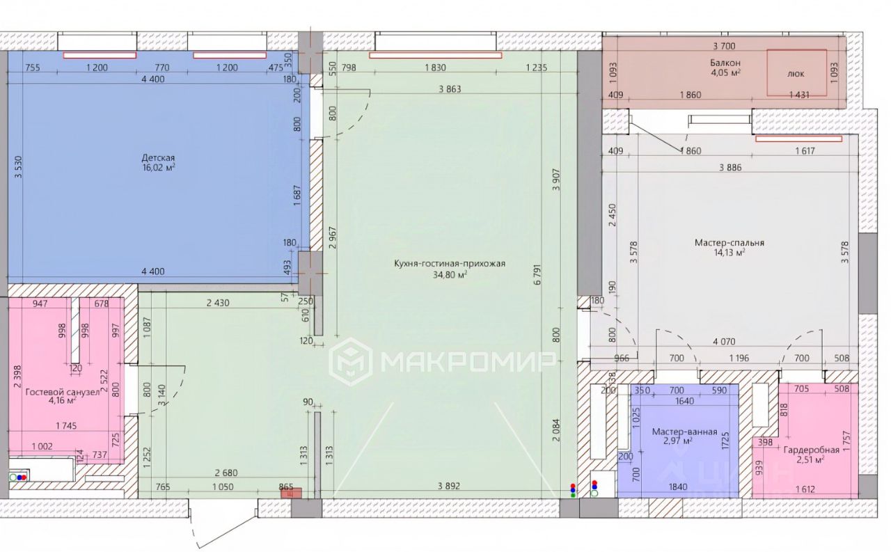 • Мастер-спальня: 14,13 кв.м. с собственным санузлом 2,97 кв.м., гардеробной 2,51 кв.м. и выходом на лоджию 4 кв.м.