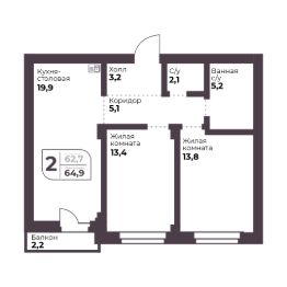 Продаётся 2-комнатная квартира в сданном доме (Ломоносова, 22 (Дом 1, секция А)), срок сдачи: I-кв. 2023, общей площадью 62.7 кв.м., на 3 этаже. Квартал "ХЮGGE" - новый проект "Голос.Девелопмент" в 5 минутах от Челябинска.