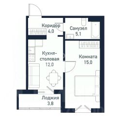 Площадь квартиры 40,5 кв.м