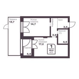 Общая площадь43,5 м²