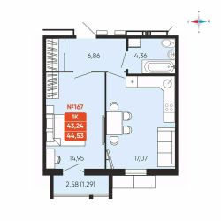 Общая площадь44,53 м²