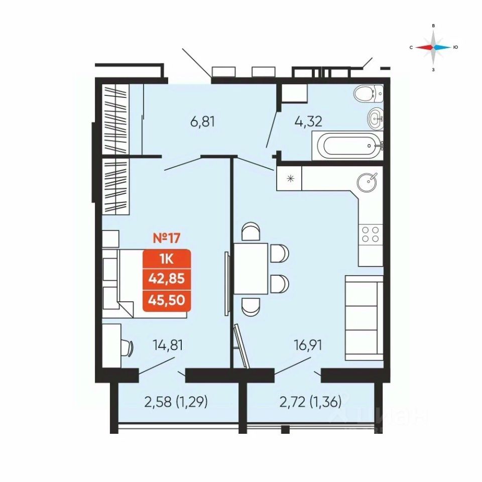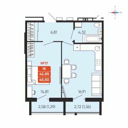 Общая площадь45,5 м²