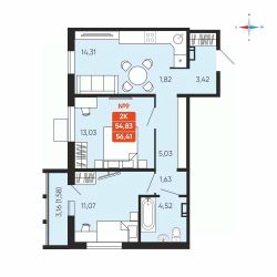 Общая площадь56,41 м²