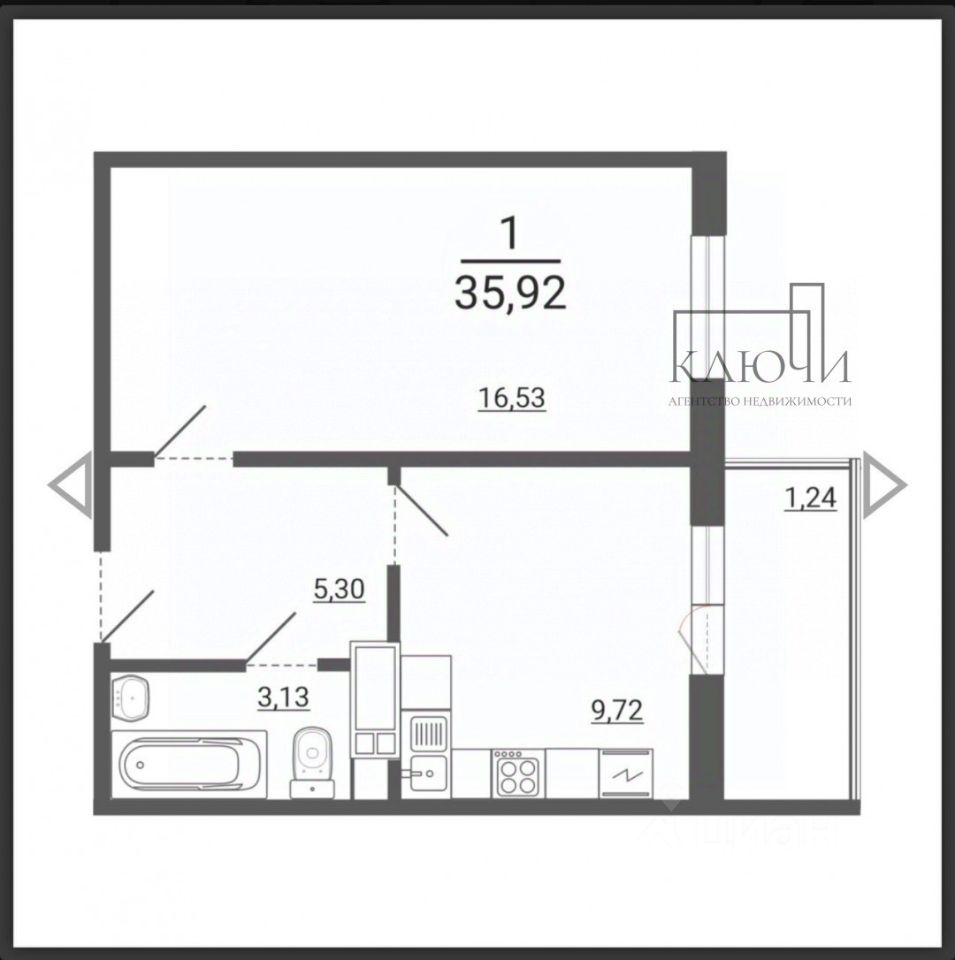 Общая площадь 34.68 кв.м.