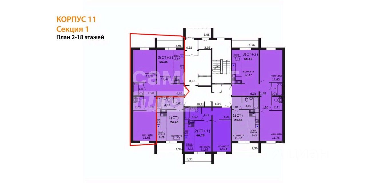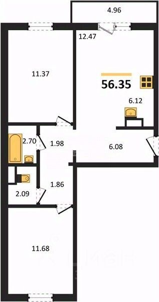Арт. 128748389 В ЖК "Хорошее Решение" предлагается квартира Студия+ 2 Спальня, общей площадью 56,35 кв.м