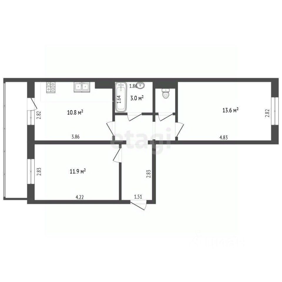 Удобная планировка, просторные комнаты 11 м2 и 14м2 . Кухня 11 м2 с выходом на просторную лоджию 6 м2. Санузел раздельный. Туалет и ванна полностью в кафеле от застройщика.