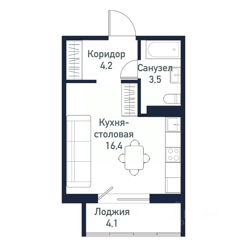 Продается студия площадью 24,25 кв.м.
