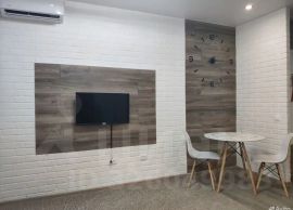 ЖК Манхеттен. Продается стильная студия с дизайнерским ремонтом в одном из лучших ЖК города. Интерьер продуман до мелочей, все зоны в квартире имеют свое пространство, вы не будете "спать на кухне"! В квартире установлена двухспальная кровать с ортопедическим матрасом, смарт ТВ, вместительный шкаф-купе, встроенная кухня со всей необходимой техникой, кондиционер. Ванная комната выполнена в темных тонах, также все комфортно распланировано, без барьерный душ, инсталляция, раковина, зеркало с подсветкой и зона со стиральной машиной с электро полотенцесушителем. Отопление в сан.узле - теплый пол с системой контроля и регулировкой под ваши предпочтения.