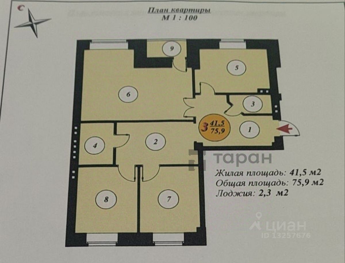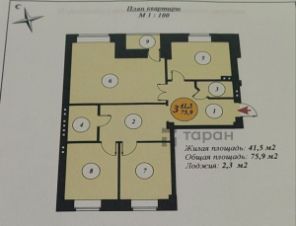 Общая площадь 76 кв.м., кухня-гостинная 21.2 кв.м. с выходом на застекленную и утеплённую лоджию площадью 2,5 кв.м., просторный холл 17 кв.м., три спальни по 10/10,3/12 кв.м. Раздельный санузел, отделан современным кафелем и керамогранитом; тёплый пол!